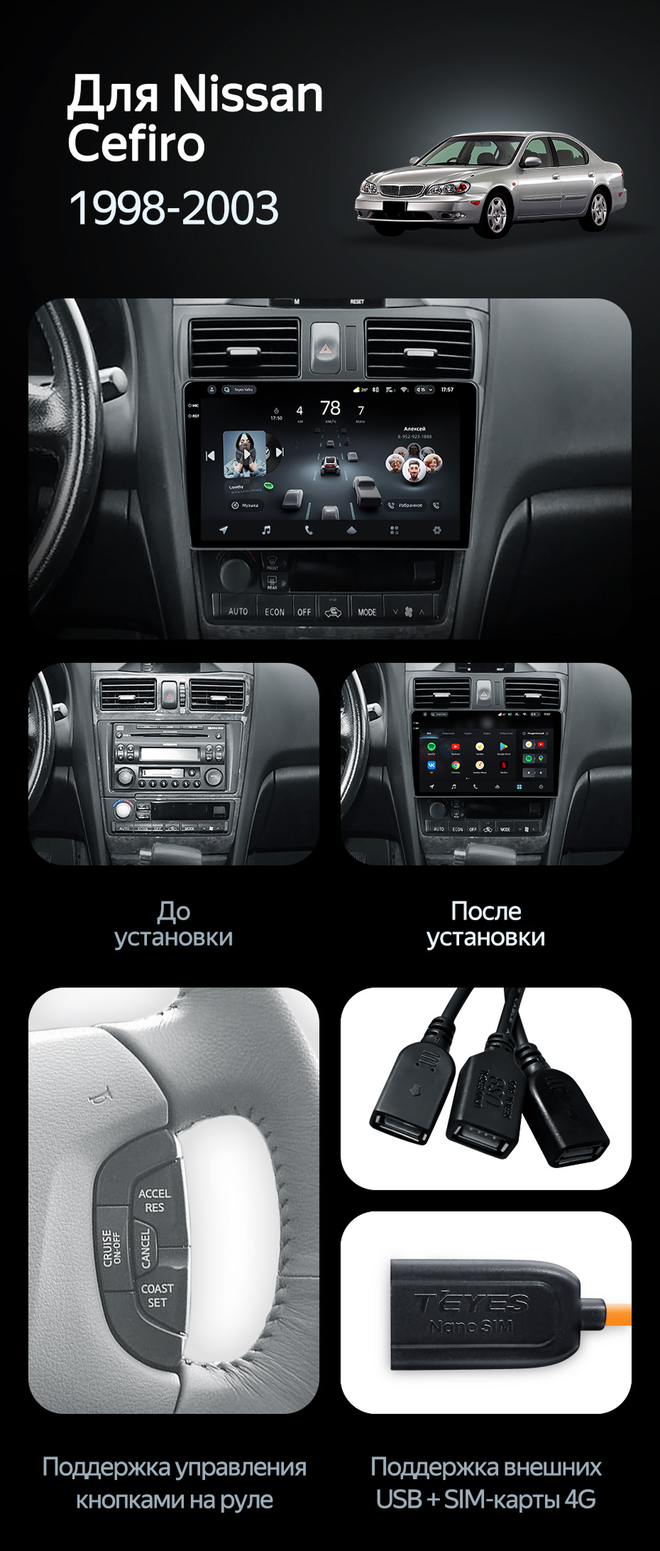 Переходная рамка Nissan Cefiro 3 A33 (1998-2003) F2 (9") - купить всего за 3 600 руб. в интернет-магазине в Бийске Teyes.com.ru. ✓ Самый лучший выбор мультимедиа ✓ Лучшая замена штатному ГУ ✓ Тел. +7 (800) 775-31-74