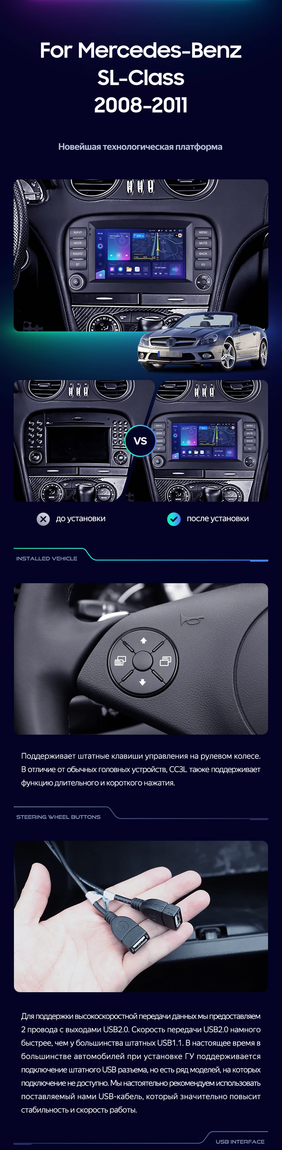 Переходная рамка Mercedes-Benz SL-Class R230 (2008-2011) (7") - купить всего за 7 000 руб. в интернет-магазине в Бийске Teyes.com.ru. ✓ Самый лучший выбор мультимедиа ✓ Лучшая замена штатному ГУ ✓ Тел. +7 (800) 775-31-74