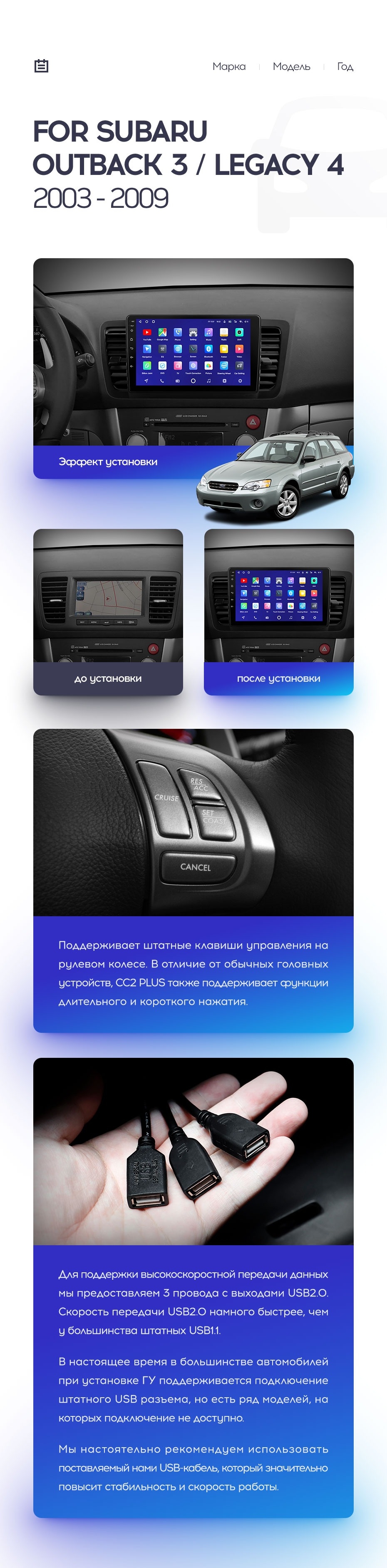 Штатная магнитола Teyes CC3 2K 4/32 Subaru Outback 3 (2003-2009) (13") - купить всего за 41 170 руб. в интернет-магазине в Бийске Teyes.com.ru. ✓ Самый лучший выбор мультимедиа ✓ Лучшая замена штатному ГУ ✓ Тел. +7 (800) 775-31-74