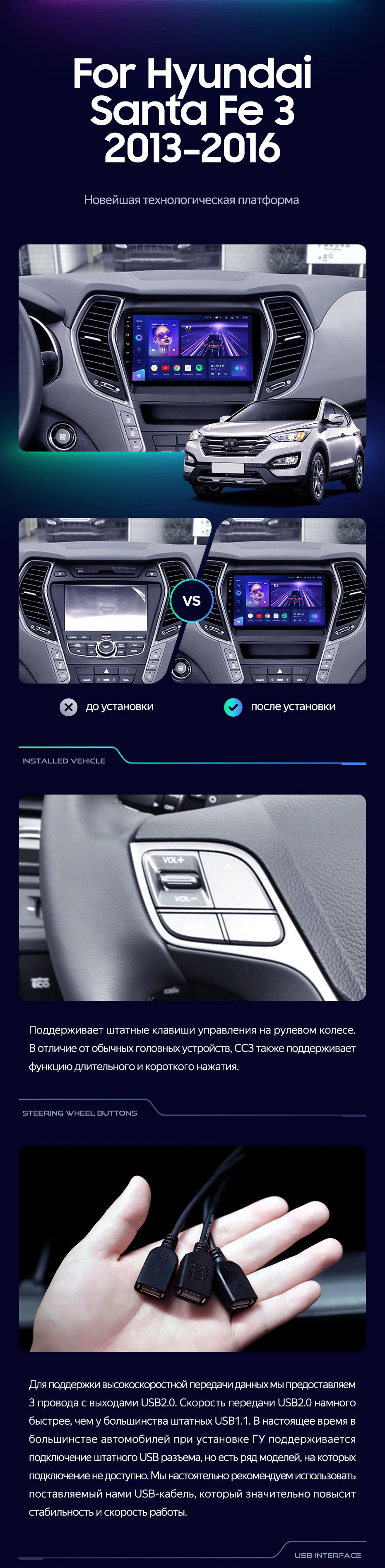 Штатная магнитола Teyes CC3 4/32 Hyundai Santa Fe 3 (2013-2016) Тип-B - купить всего за 33 530 руб. в интернет-магазине в Бийске Teyes.com.ru. ✓ Самый лучший выбор мультимедиа ✓ Лучшая замена штатному ГУ ✓ Тел. +7 (800) 775-31-74