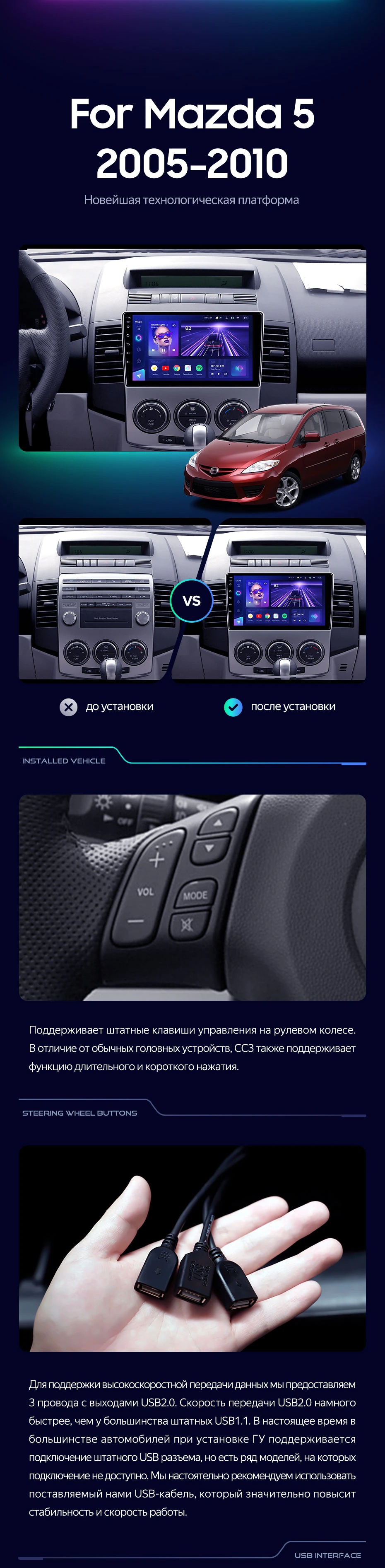 Штатная магнитола Teyes CC3 4/32 Mazda 5 2 CR (2005-2010) - купить всего за 33 130 руб. в интернет-магазине в Бийске Teyes.com.ru. ✓ Самый лучший выбор мультимедиа ✓ Лучшая замена штатному ГУ ✓ Тел. +7 (800) 775-31-74