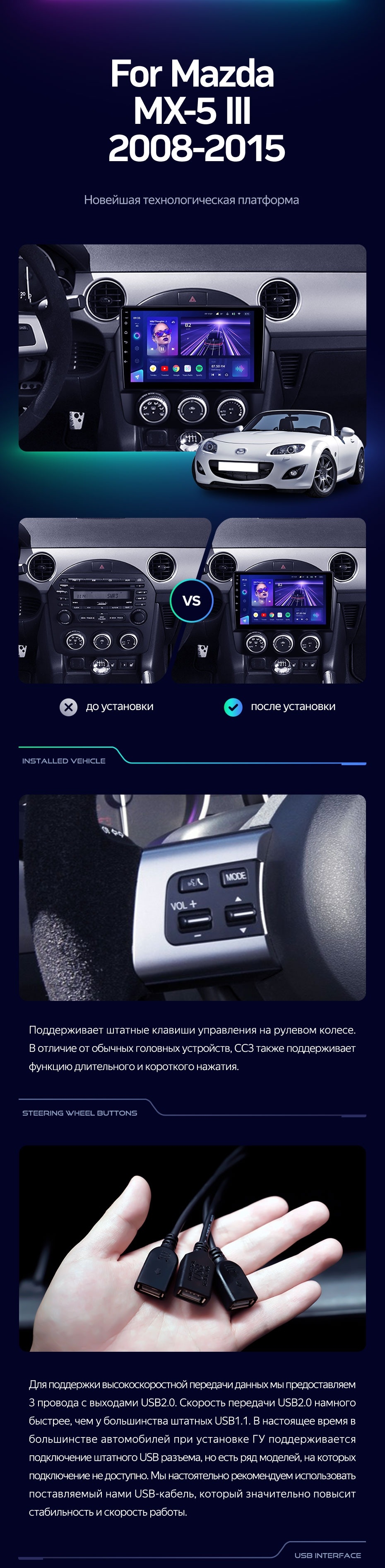 Штатная магнитола Teyes CC3 4/32 Mazda MX-5 (2008-2015) - купить всего за 34 230 руб. в интернет-магазине в Бийске Teyes.com.ru. ✓ Самый лучший выбор мультимедиа ✓ Лучшая замена штатному ГУ ✓ Тел. +7 (800) 775-31-74