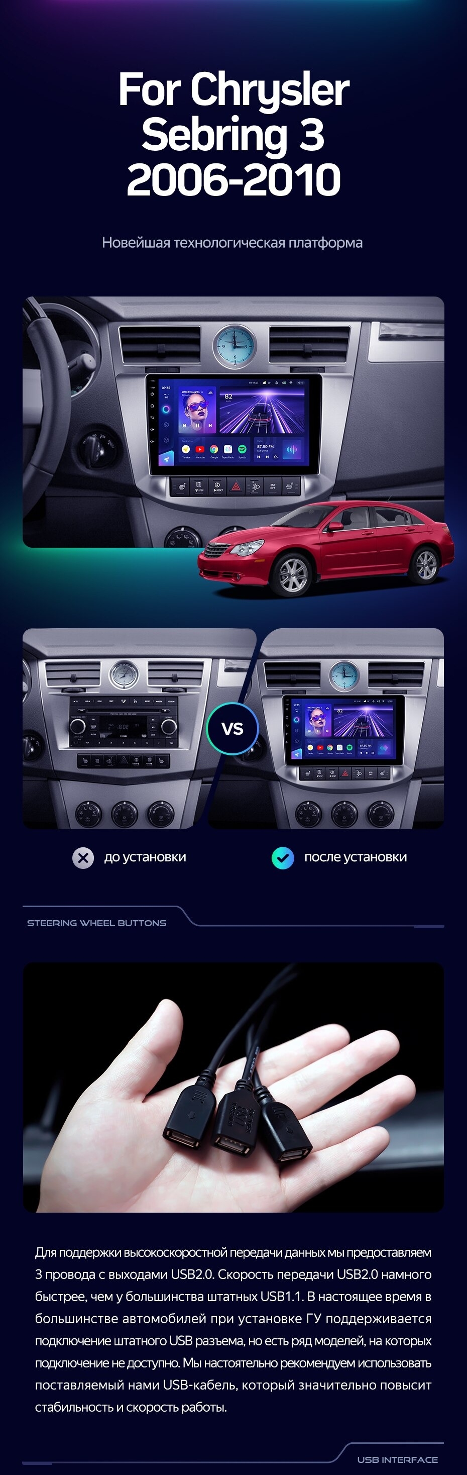 Штатная магнитола Teyes CC3L 4/32 Chrysler Sebring 3 JS (2006-2010) - купить всего за 31 400 руб. в интернет-магазине в Бийске Teyes.com.ru. ✓ Самый лучший выбор мультимедиа ✓ Лучшая замена штатному ГУ ✓ Тел. +7 (800) 775-31-74