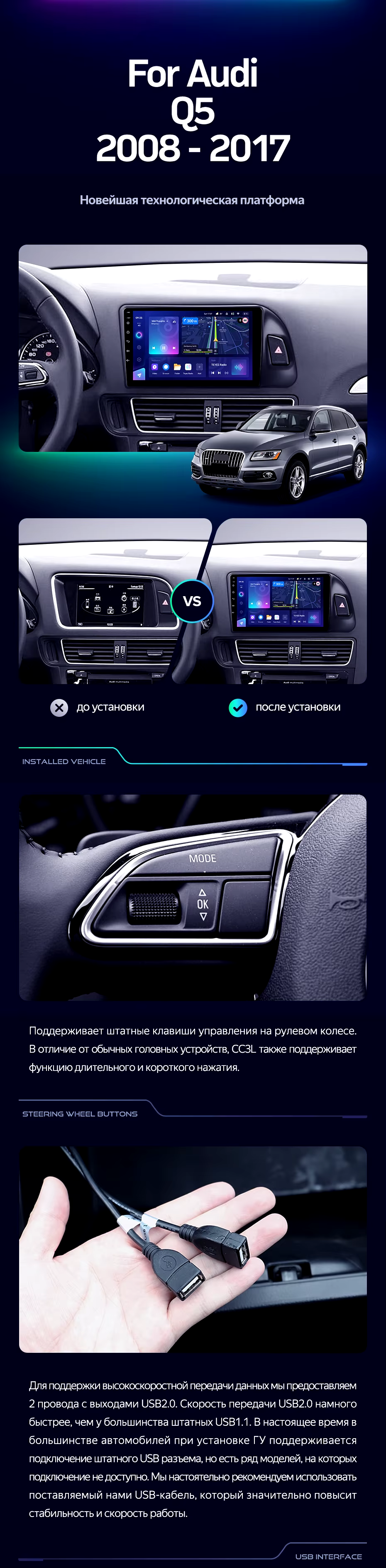 Штатная магнитола Teyes CC3L 4/64 Audi Q5 8R (2008-2017) Тип-A - купить всего за 33 750 руб. в интернет-магазине в Бийске Teyes.com.ru. ✓ Самый лучший выбор мультимедиа ✓ Лучшая замена штатному ГУ ✓ Тел. +7 (800) 775-31-74
