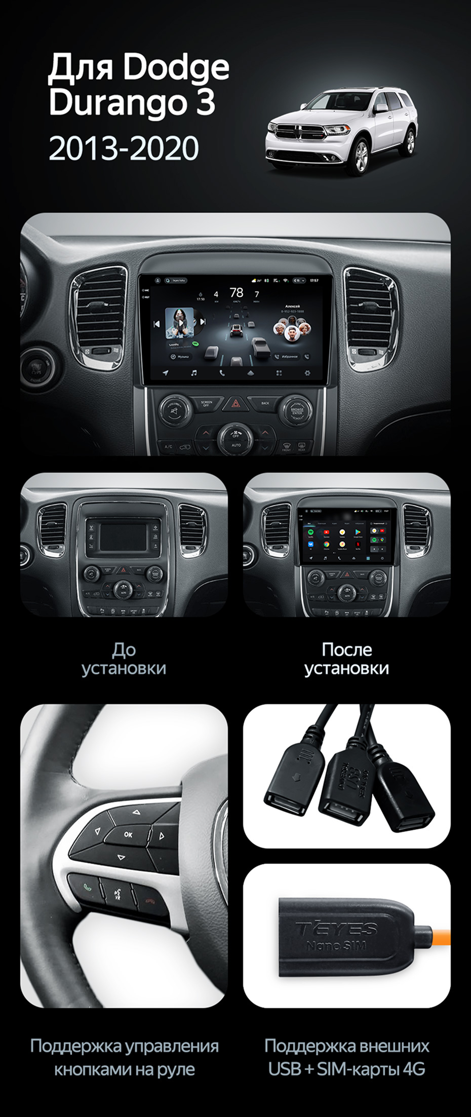 Штатная магнитола Teyes CC3L 4/64 Dodge Durango 3 (2013-2020) - купить всего за 33 300 руб. в интернет-магазине в Бийске Teyes.com.ru. ✓ Самый лучший выбор мультимедиа ✓ Лучшая замена штатному ГУ ✓ Тел. +7 (800) 775-31-74