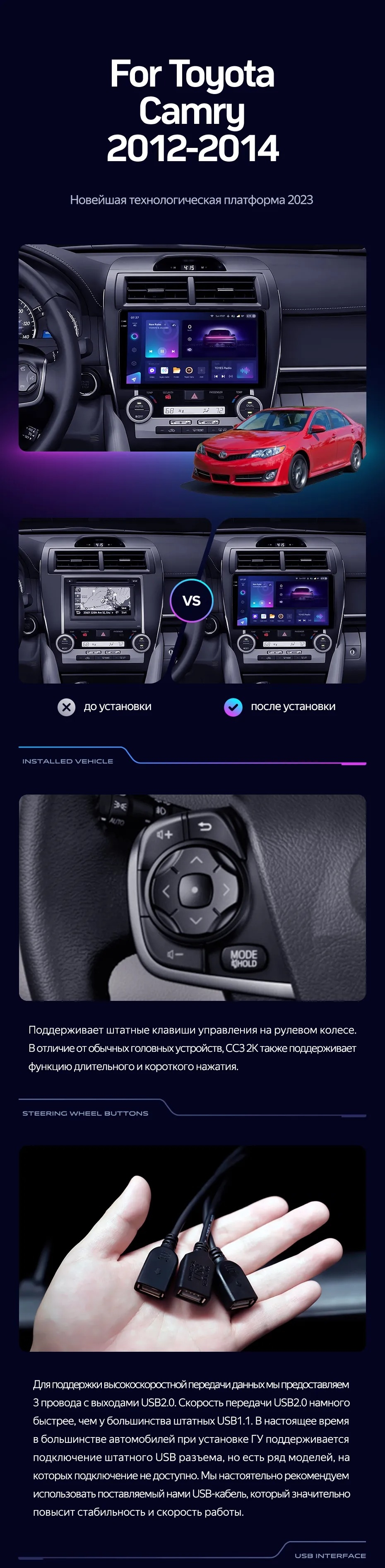 Штатная магнитола Teyes CC3L WiFi 2/32 Toyota Camry 7 XV 50 55 (2012-2014) Америка - купить всего за 17 100 руб. в интернет-магазине в Бийске Teyes.com.ru. ✓ Самый лучший выбор мультимедиа ✓ Лучшая замена штатному ГУ ✓ Тел. +7 (800) 775-31-74