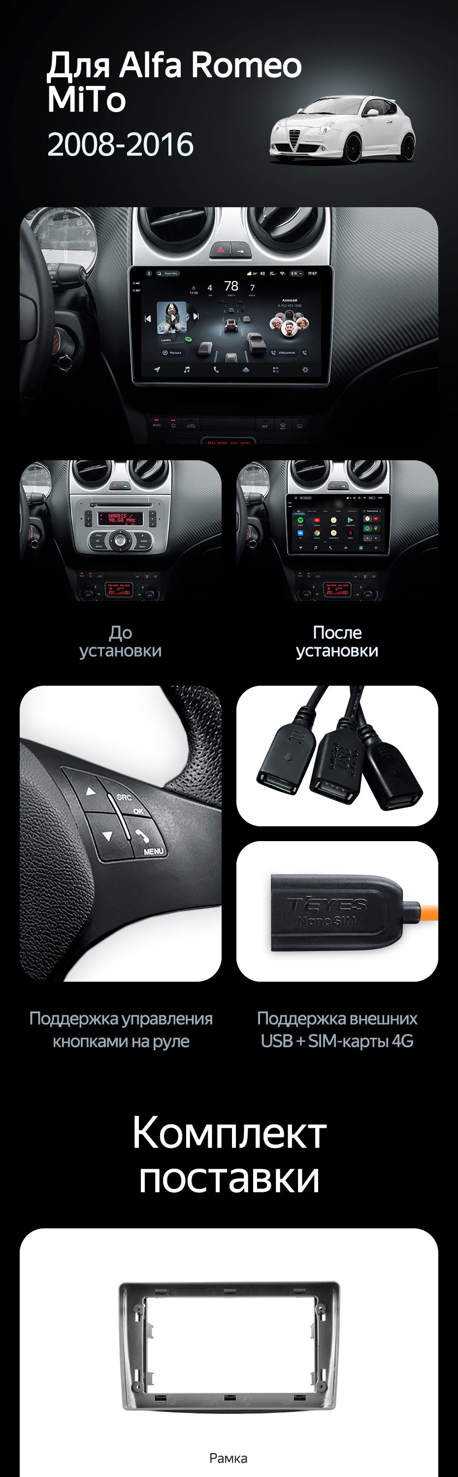 Штатная магнитола Teyes CC4 6/64 Alfa Romeo MiTo 955 (2008-2016) - купить всего за 46 500 руб. в интернет-магазине в Бийске Teyes.com.ru. ✓ Самый лучший выбор мультимедиа ✓ Лучшая замена штатному ГУ ✓ Тел. +7 (800) 775-31-74