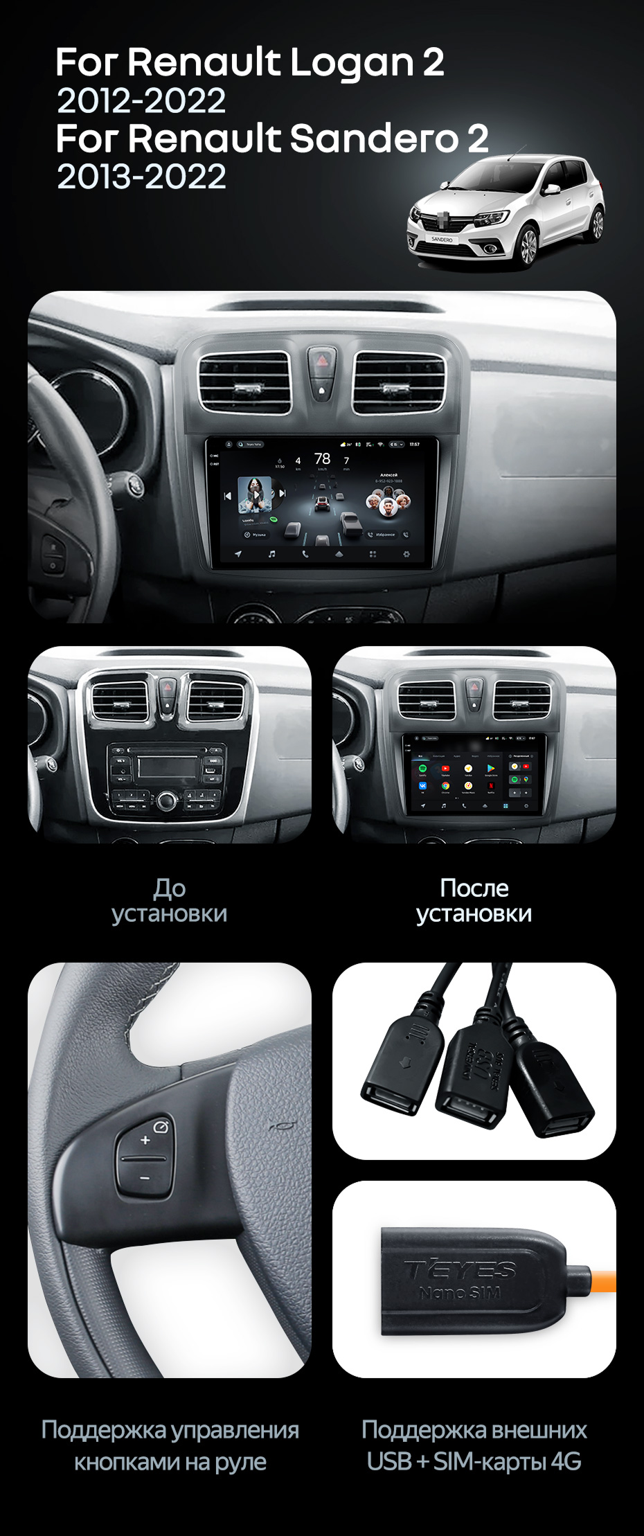 Штатная магнитола Teyes CC4 6/64 Renault Logan 2 (2012-2022) F2 - купить всего за 43 500 руб. в интернет-магазине в Бийске Teyes.com.ru. ✓ Самый лучший выбор мультимедиа ✓ Лучшая замена штатному ГУ ✓ Тел. +7 (800) 775-31-74