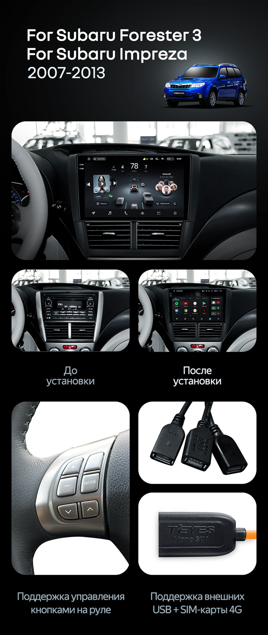 Штатная магнитола Teyes CC4 6/64 Subaru Forester 3 SH (2007-2013) - купить всего за 43 400 руб. в интернет-магазине в Бийске Teyes.com.ru. ✓ Самый лучший выбор мультимедиа ✓ Лучшая замена штатному ГУ ✓ Тел. +7 (800) 775-31-74