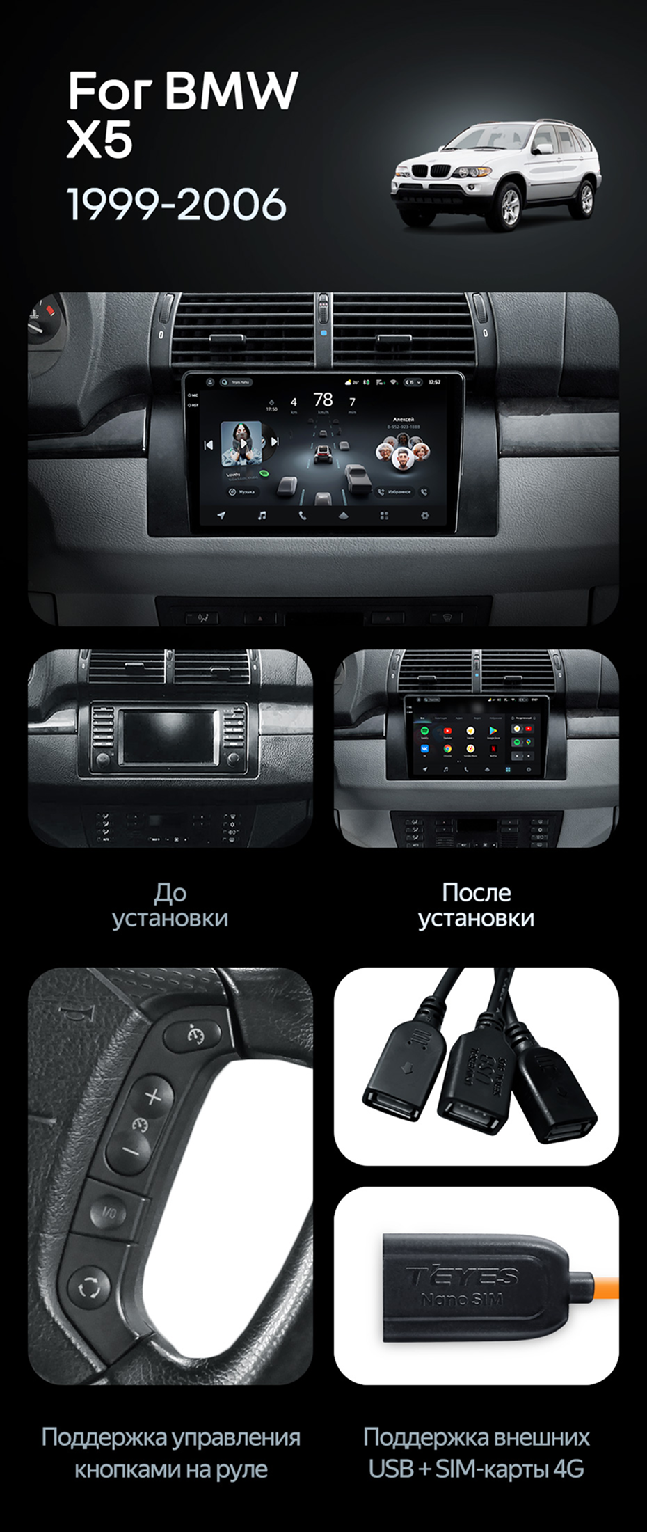 Штатная магнитола Teyes CC4 Pro 12/256 BMW X5 E39 E53 (1999-2006) - купить всего за 70 790 руб. в интернет-магазине в Бийске Teyes.com.ru. ✓ Самый лучший выбор мультимедиа ✓ Лучшая замена штатному ГУ ✓ Тел. +7 (800) 775-31-74