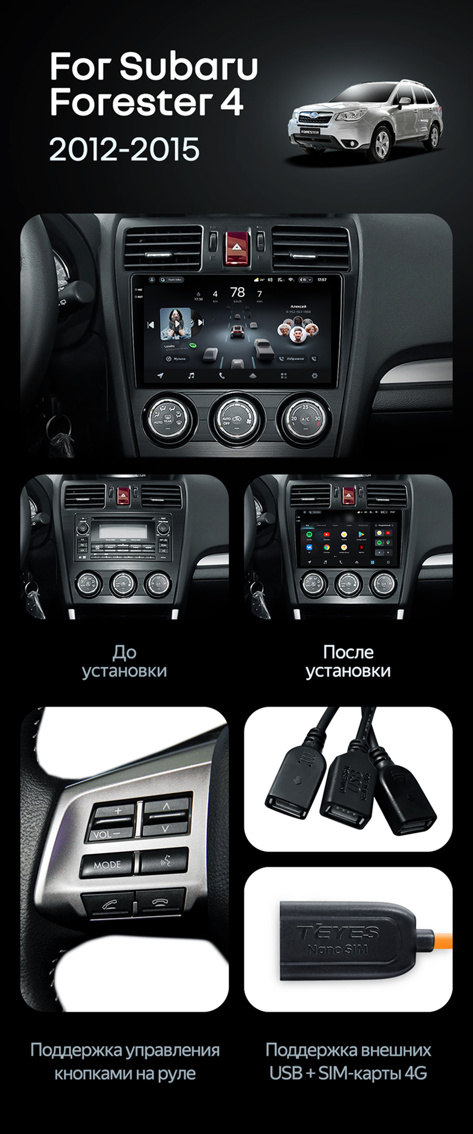 Штатная магнитола Teyes CC4 Pro 12/256 Subaru Forester 4 SJ (2012-2015) Тип-A - купить всего за 68 100 руб. в интернет-магазине в Бийске Teyes.com.ru. ✓ Самый лучший выбор мультимедиа ✓ Лучшая замена штатному ГУ ✓ Тел. +7 (800) 775-31-74
