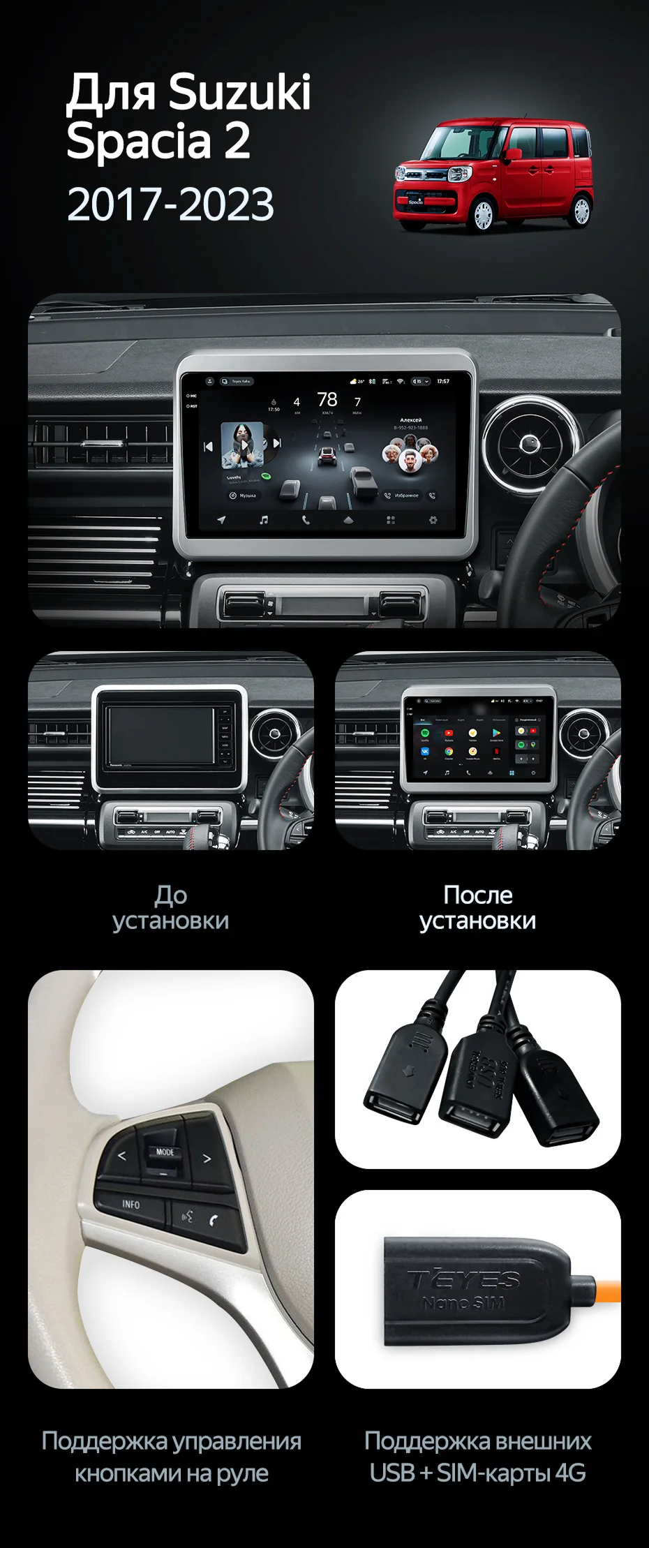 Штатная магнитола Teyes CC4 Pro 12/256 Suzuki Spacia 2 (2017-2023) - купить всего за 68 500 руб. в интернет-магазине в Бийске Teyes.com.ru. ✓ Самый лучший выбор мультимедиа ✓ Лучшая замена штатному ГУ ✓ Тел. +7 (800) 775-31-74