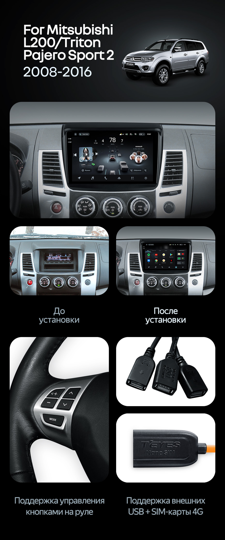 Штатная магнитола Teyes CC4 Pro 8/128 Mitsubishi L200 (2008-2016) - купить всего за 58 320 руб. в интернет-магазине в Бийске Teyes.com.ru. ✓ Самый лучший выбор мультимедиа ✓ Лучшая замена штатному ГУ ✓ Тел. +7 (800) 775-31-74