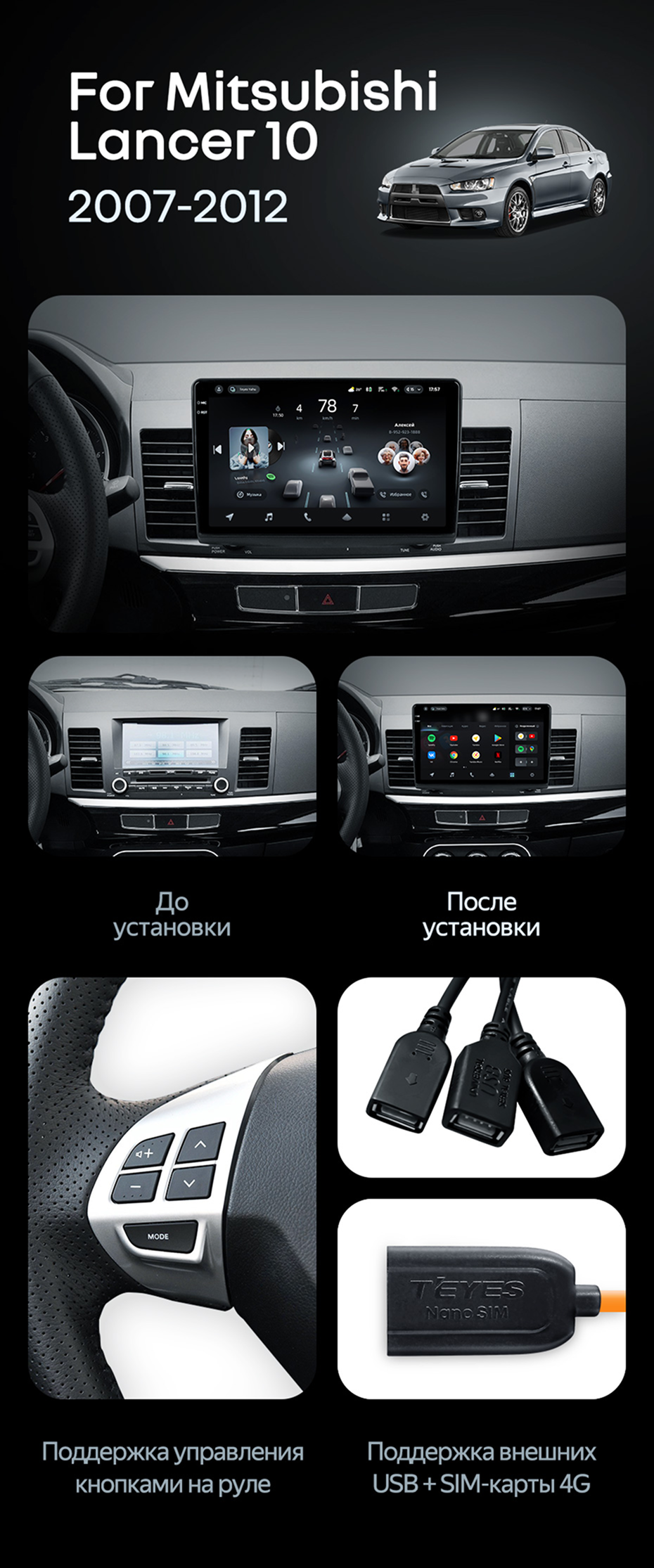 Штатная магнитола Teyes CC4 Pro 8/128 Mitsubishi Lancer 10 CY (2007-2012) Тип-A - купить всего за 57 760 руб. в интернет-магазине в Бийске Teyes.com.ru. ✓ Самый лучший выбор мультимедиа ✓ Лучшая замена штатному ГУ ✓ Тел. +7 (800) 775-31-74
