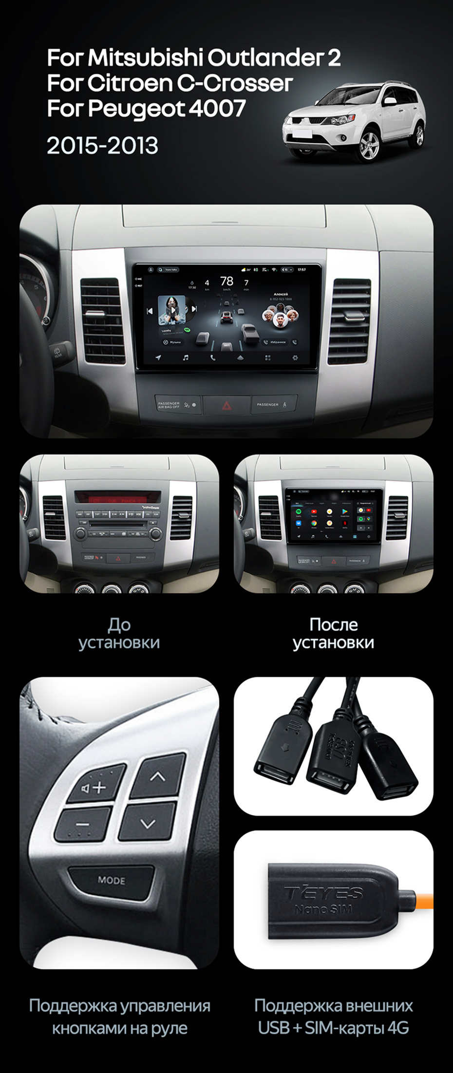Штатная магнитола Teyes CC4 Pro 8/128 Peugeot 4007 (2007-2012) Тип-A - купить всего за 58 170 руб. в интернет-магазине в Бийске Teyes.com.ru. ✓ Самый лучший выбор мультимедиа ✓ Лучшая замена штатному ГУ ✓ Тел. +7 (800) 775-31-74