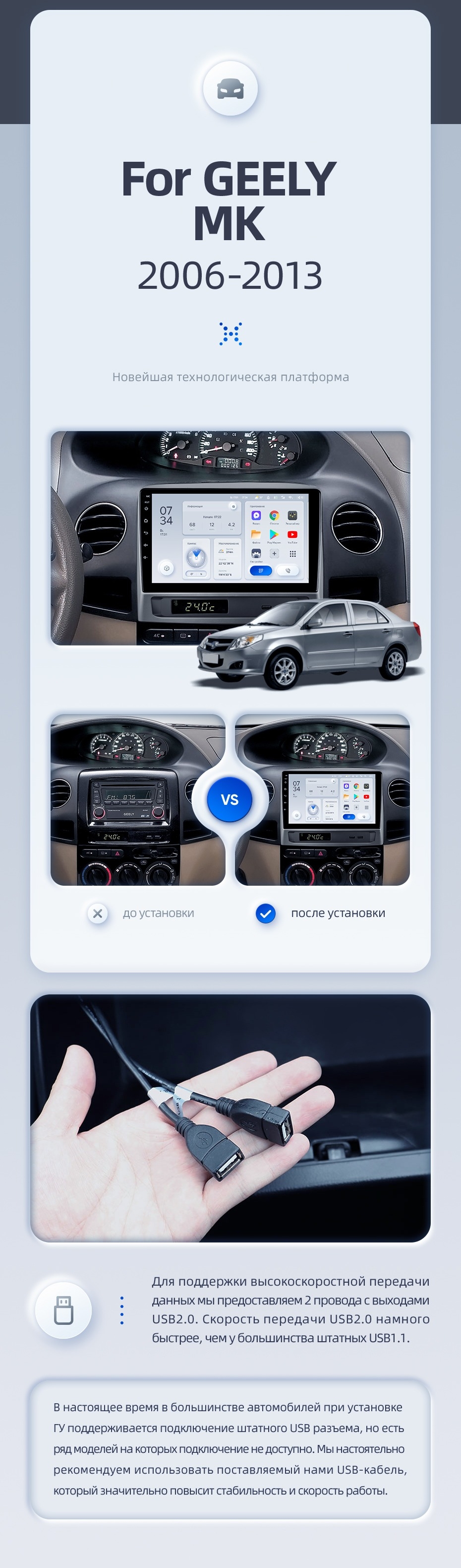 | USB | 3×USB 2.0 + USB 3.0 | Доп. аксессуары | Передняя/задняя AHD-камера, DVR-регистратор, TPMS, парковочный OBD, Type-C → HDMI |