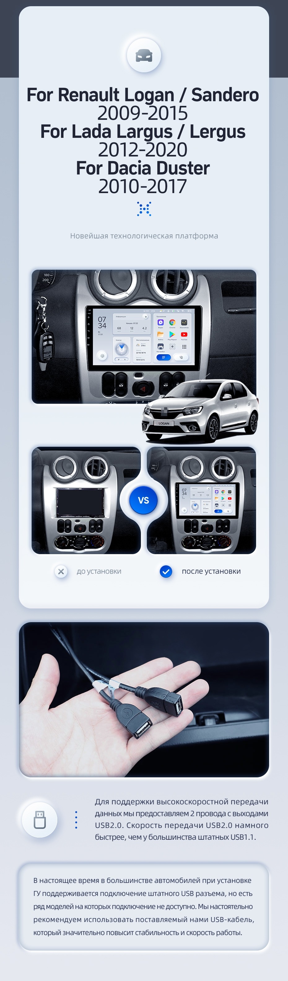 | USB | 3×USB 2.0 + USB 3.0 | Доп. аксессуары | Передняя/задняя AHD-камера, DVR-регистратор, TPMS, парковочный OBD, Type-C → HDMI |