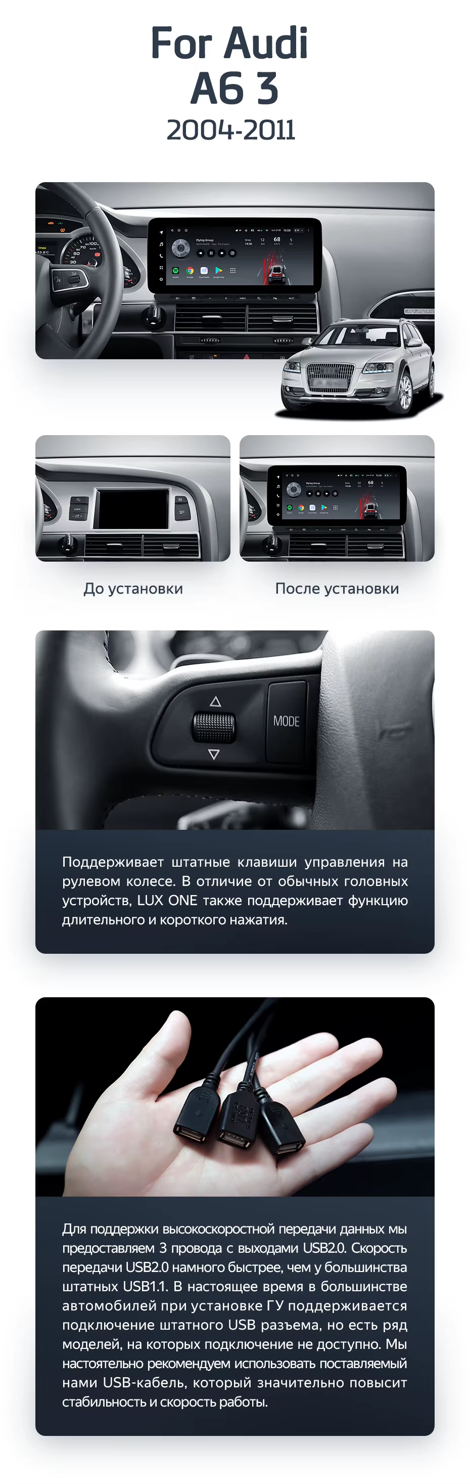 Штатная магнитола Teyes LUX ONE 4/64 Audi A6 3 C6 (2004-2011) - купить всего за 43 400 руб. в интернет-магазине в Бийске Teyes.com.ru. ✓ Самый лучший выбор мультимедиа ✓ Лучшая замена штатному ГУ ✓ Тел. +7 (800) 775-31-74