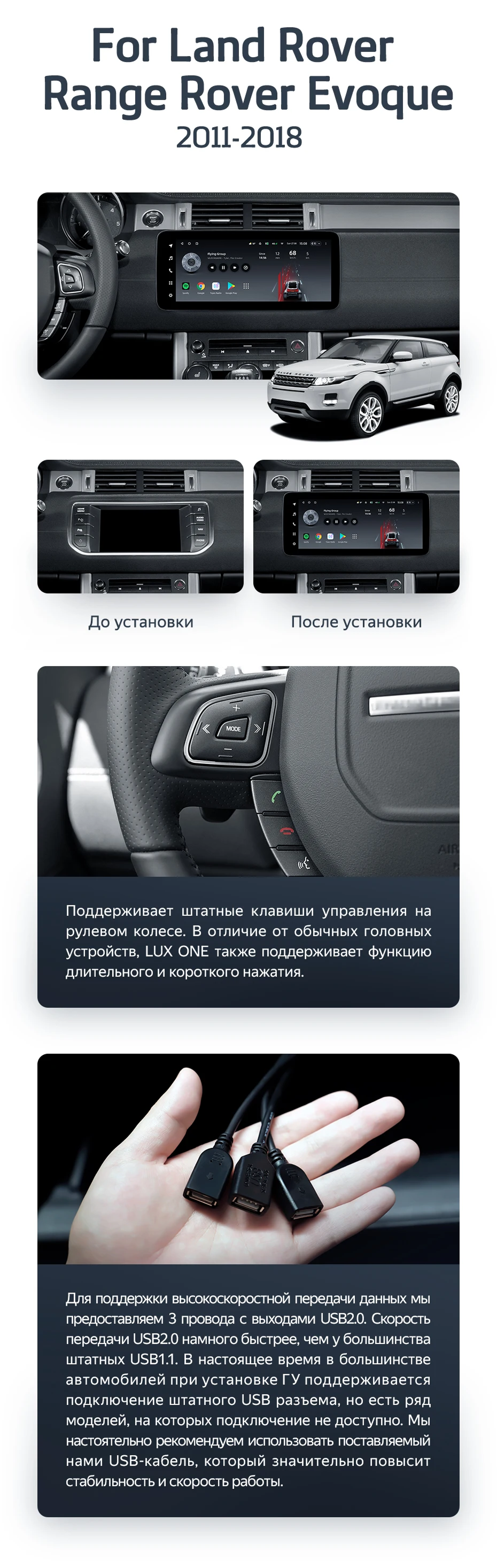 Штатная магнитола Teyes LUX ONE 4/64 Land Rover Range Rover Evoque (2011-2018) Тип-B - купить всего за 55 500 руб. в интернет-магазине в Бийске Teyes.com.ru. ✓ Самый лучший выбор мультимедиа ✓ Лучшая замена штатному ГУ ✓ Тел. +7 (800) 775-31-74