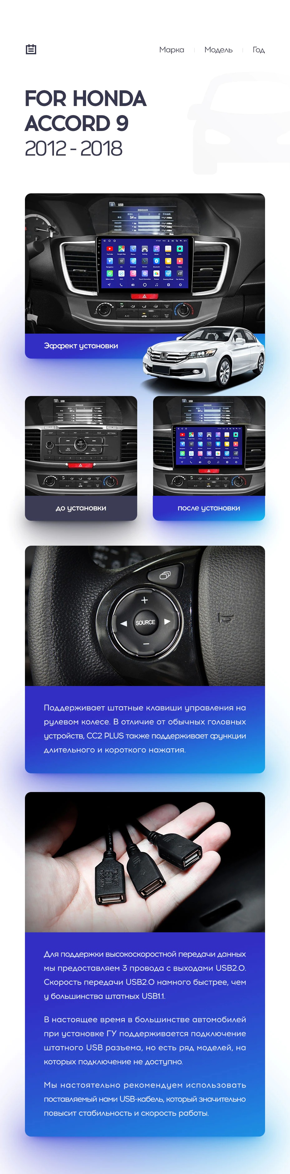Полный комплект установки магнитолы Teyes с рамкой и проводкой можно выбрать в каталоге штатных магнитол Honda Accord 9 CR (2012-2018).