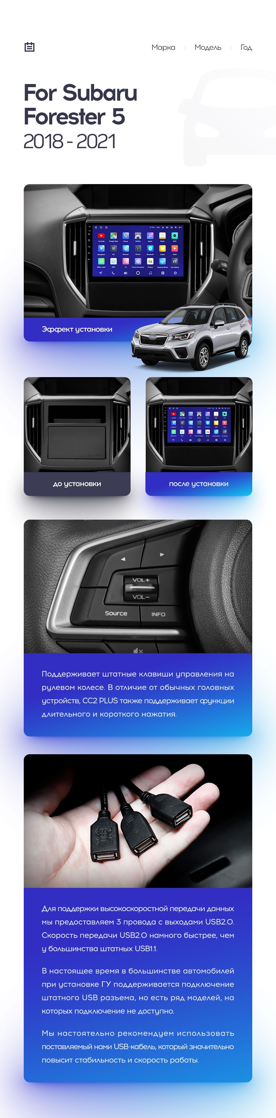 Полный комплект установки магнитолы Teyes с рамкой и проводкой можно выбрать в каталоге штатных магнитол Subaru Forester 5 (2018-2021).